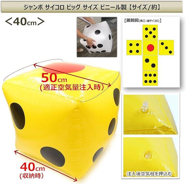 社内イベントや周年パーティー、新年会や忘年会、縁日や子ども会、老人会や介護施設など大人数で行うゲームや抽選会、縁日や夏祭り、納涼祭などには欠かせない大きいサイズのビニール製バルーンサイコロです。